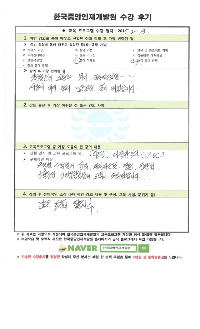 서울시 강남구 도곡동 467-6 대림아크로텔 C동 1402호   I   Copyright ⓒ 2017 Korea HRD Center. All rights reserved.
