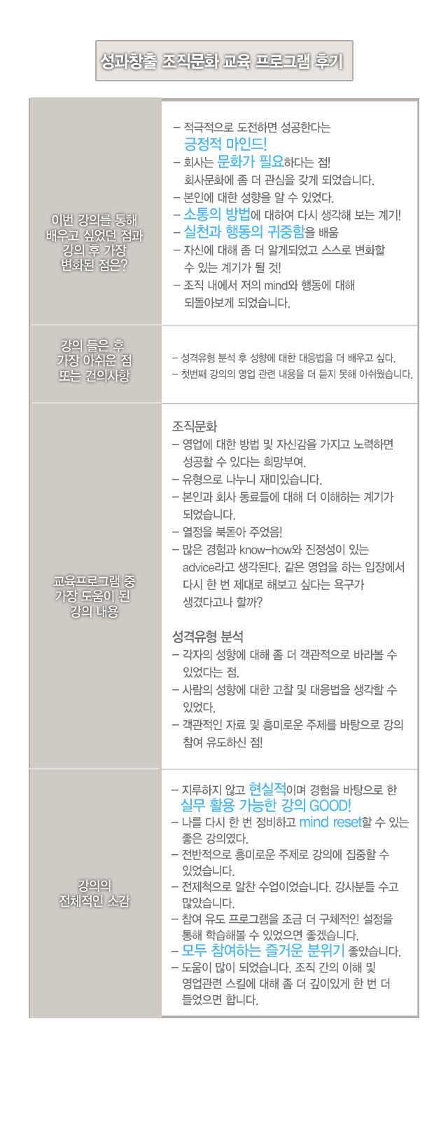 교육프로그램 중 가장 도움이 된 강의 내용