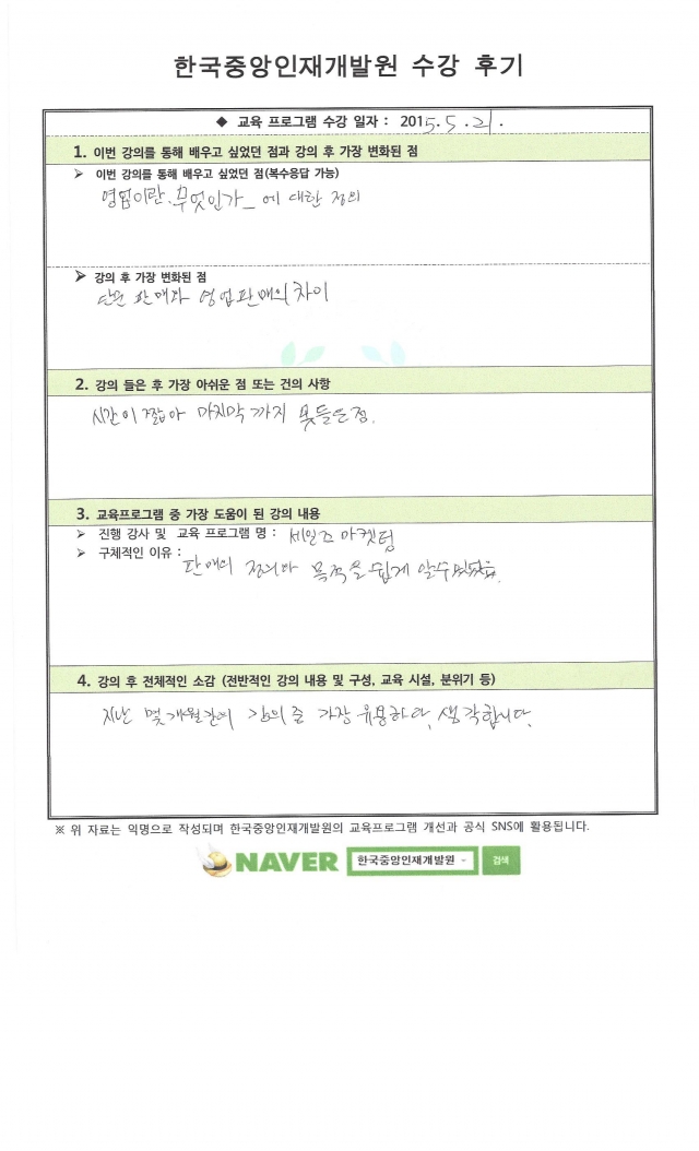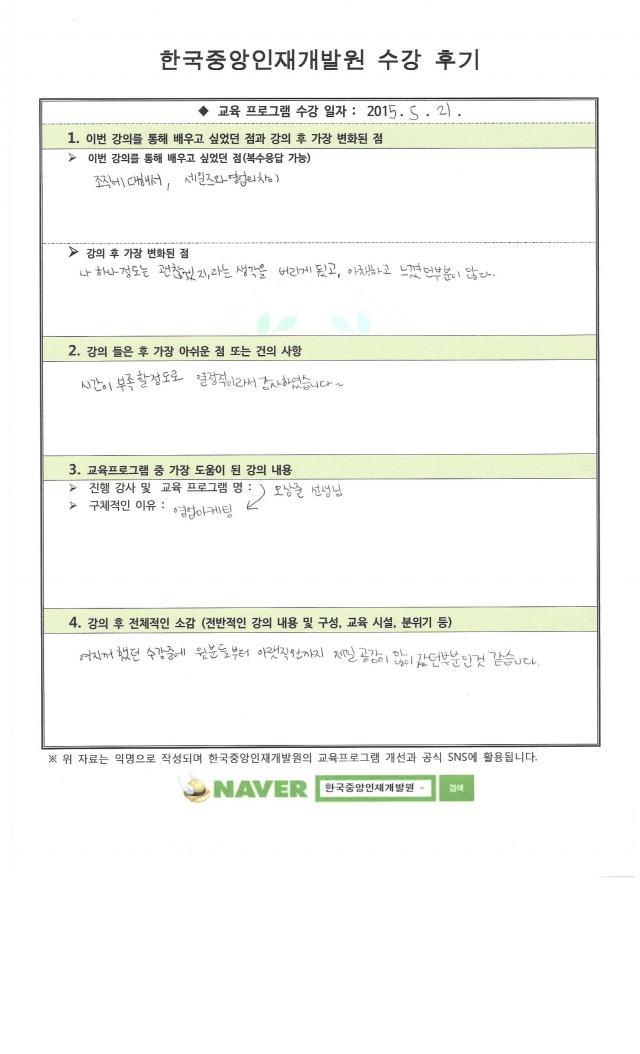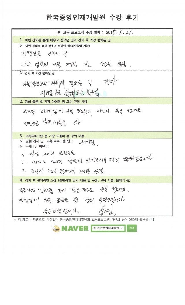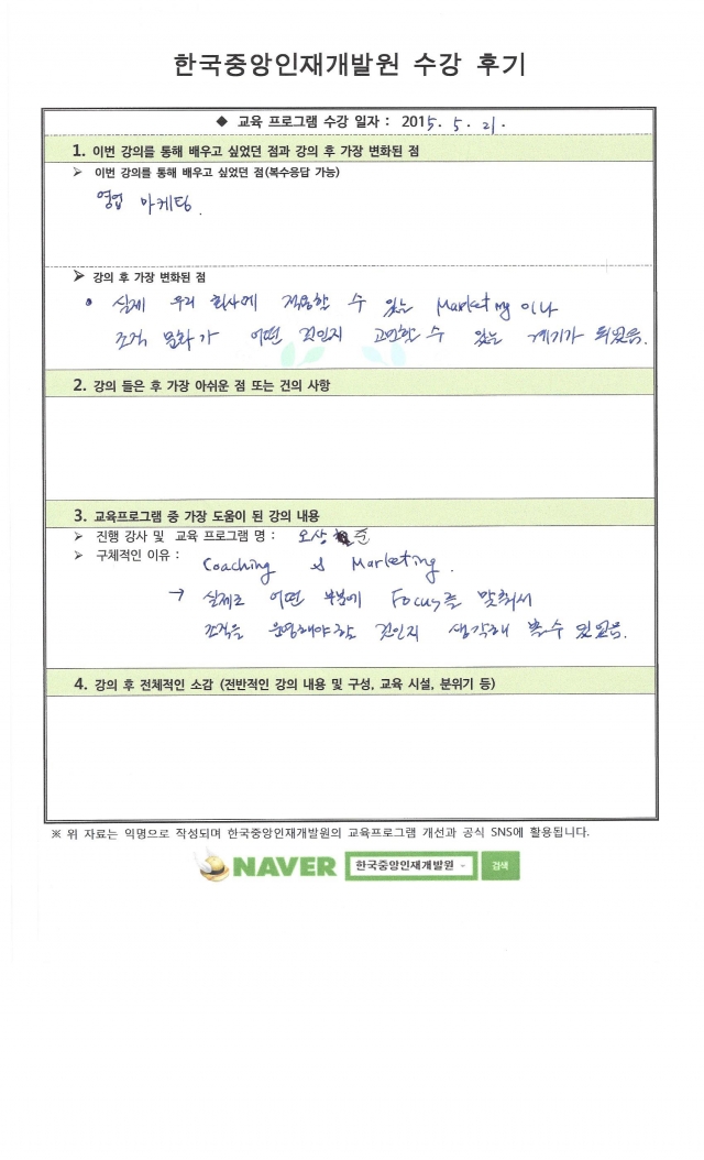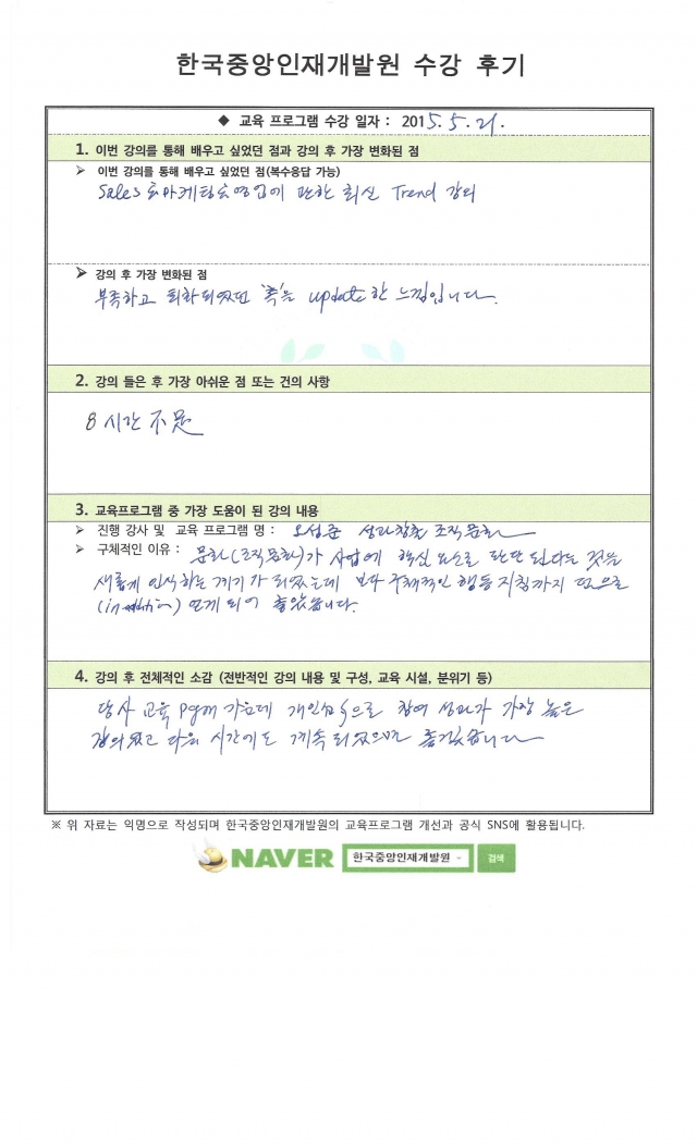 2015. 05.21. 유원엔지니어링 성과창출 영업마케팅 5월 교육 프로그램 후기