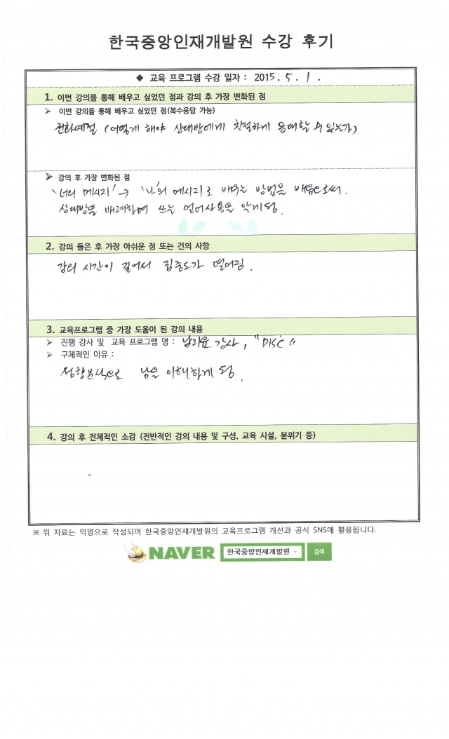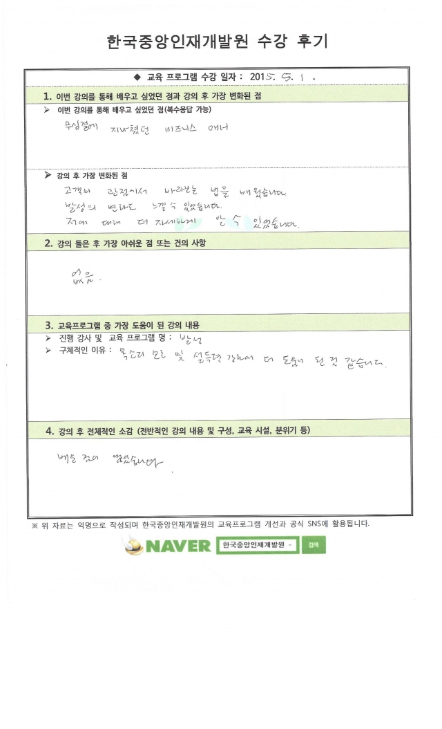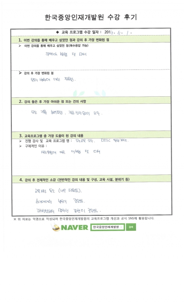 2015.05.01 비츠로셀(서울) 비지니스 매너 및 커뮤니케이션 스피치 교육 후기