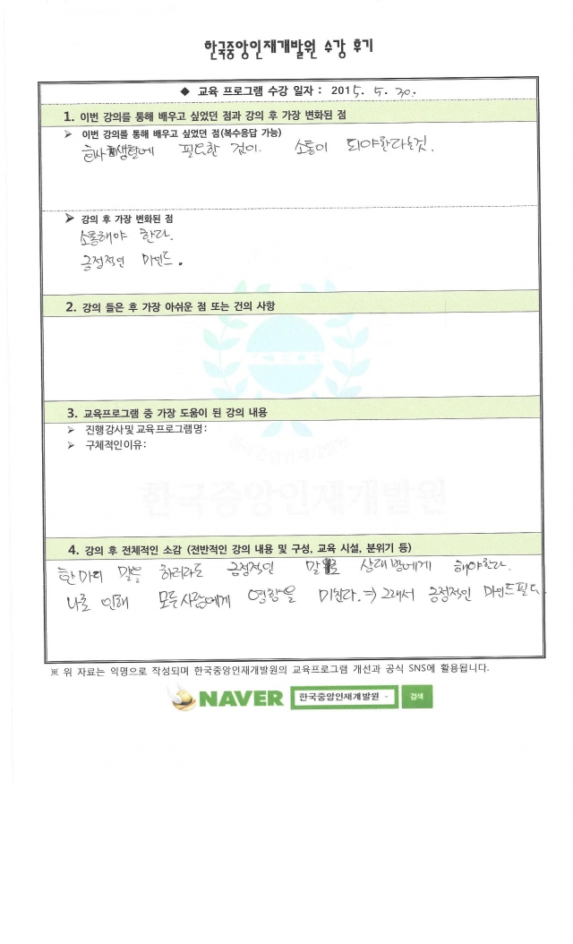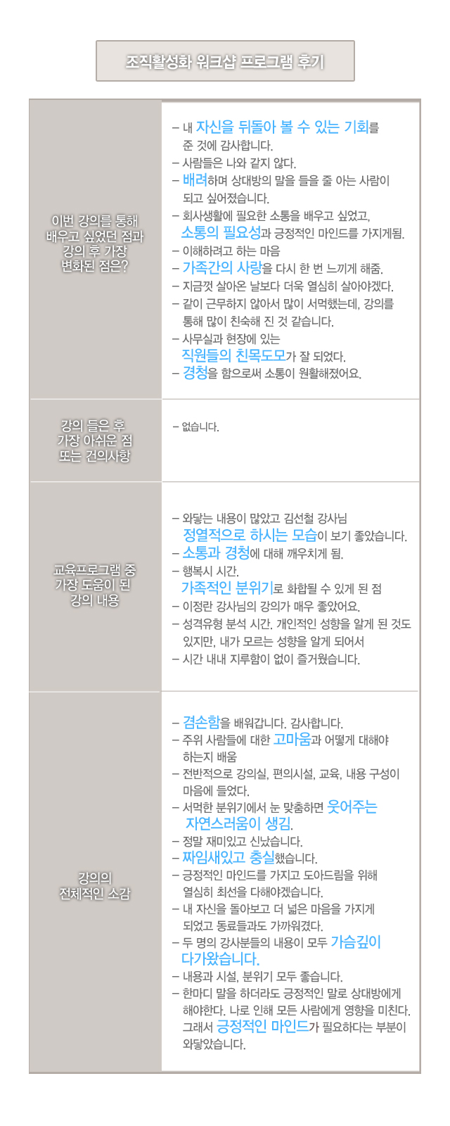 교육프로그램 중 가장 도움이 된 강의 내용