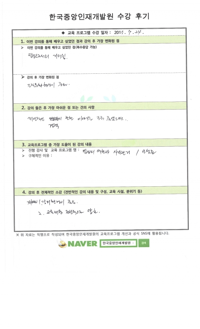2015.07.24 ~ 07.25 어린이집 안전공제회 직무향상 워크샵 교육프로그램 후기