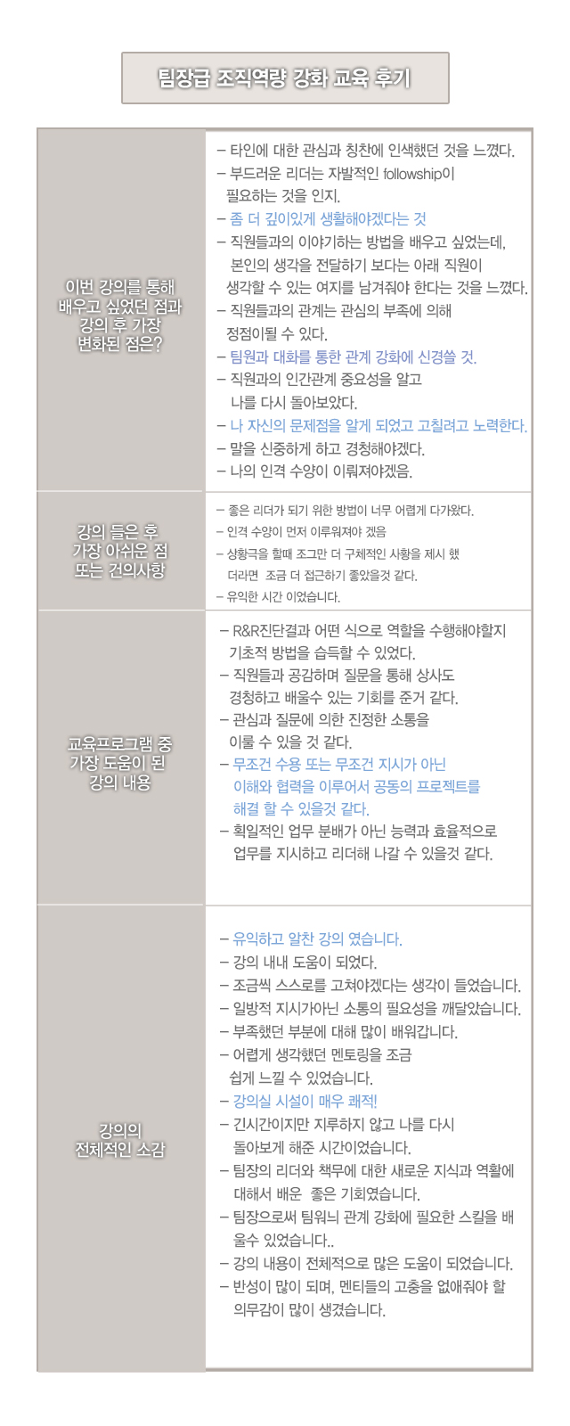 교육프로그램 중 가장 도움이 된 강의 내용