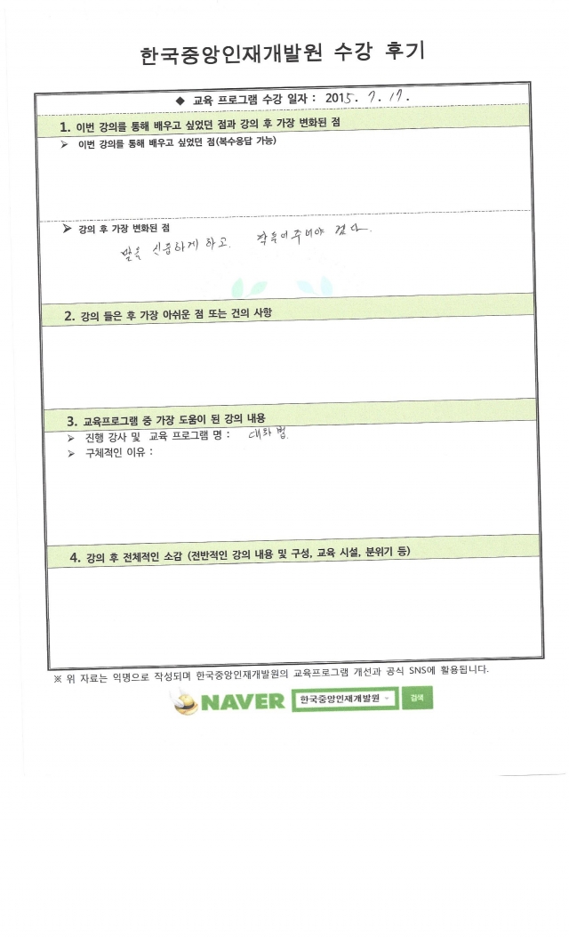 2015.07.17 켐리치교역 교육프로그램 후기