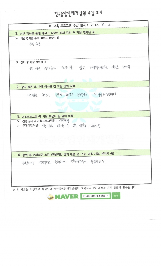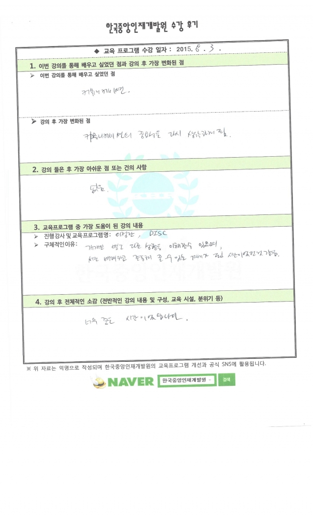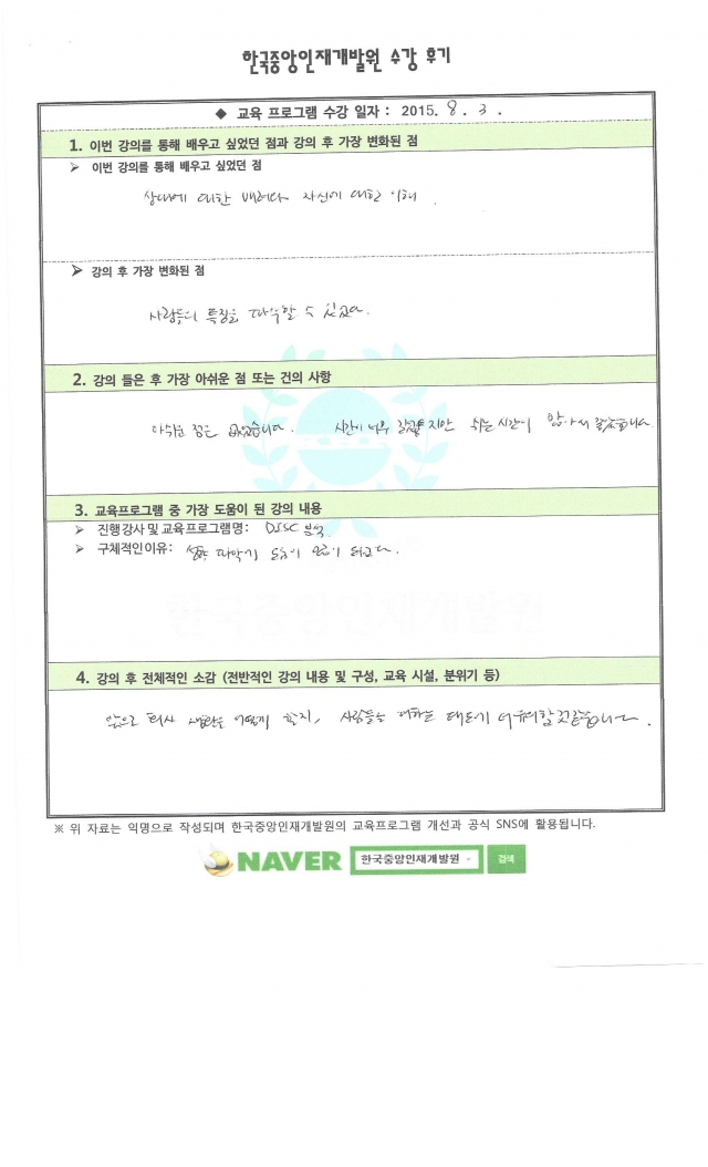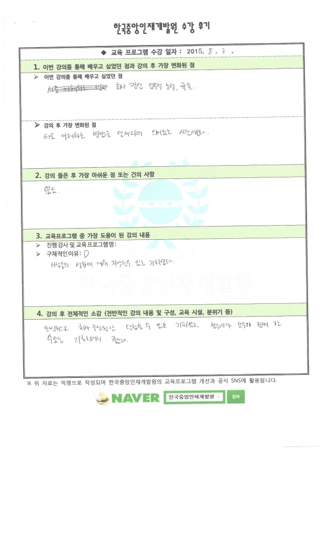 2015.08.03 (주)테스트마이다스 조직문화,성희롱예방 교육프로그램 후기