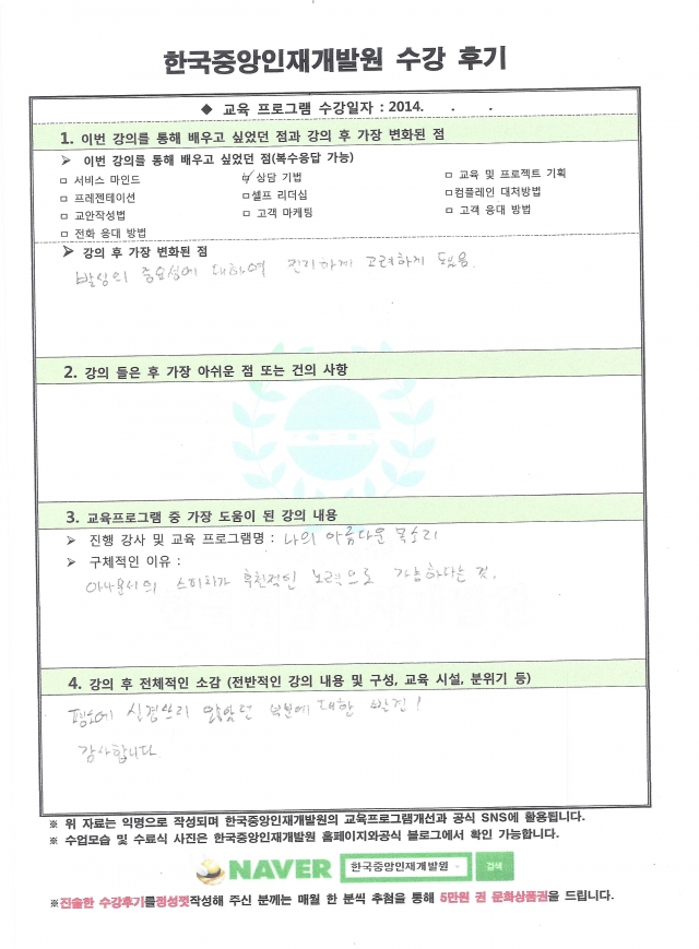 한국중앙인재개발원에서 진행한 기업교육 및 기업연수를 받은
