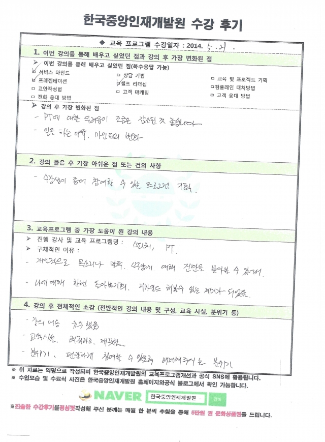 한국중앙인재개발원에서 진행한 기업교육 및 기업연수를 받은