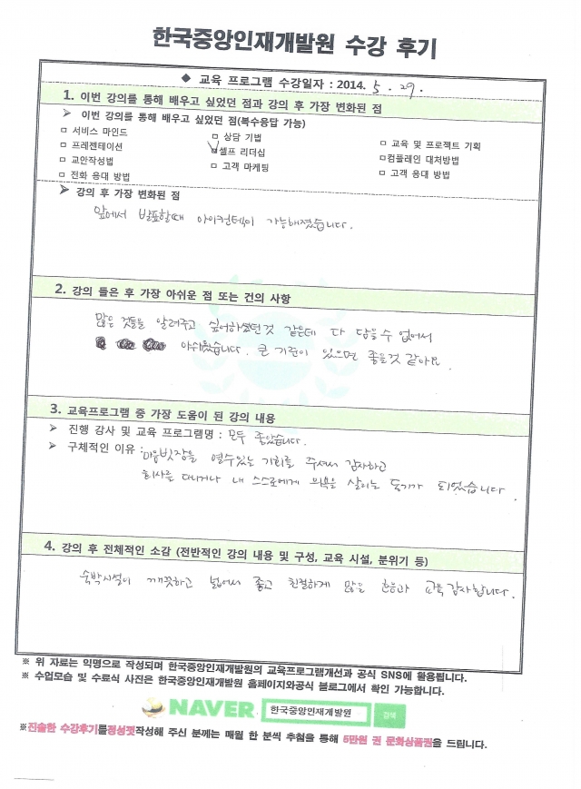 기업연수생들이 정성스럽게 손으로 작성한 진솔한 후기입니다.