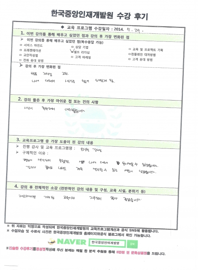 기업연수생들이 정성스럽게 손으로 작성한 진솔한 후기입니다.