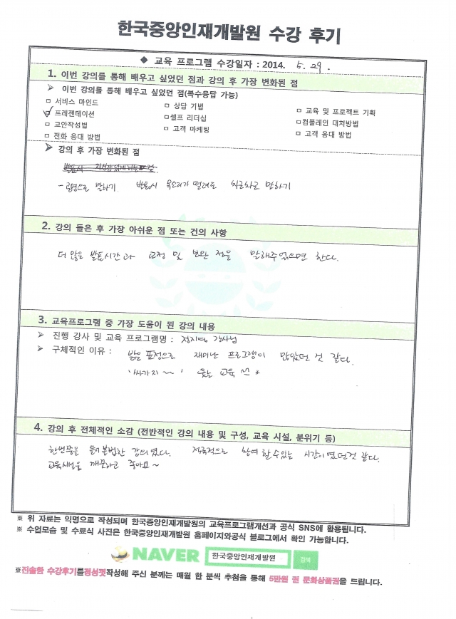기업연수생들이 정성스럽게 손으로 작성한 진솔한 후기입니다.