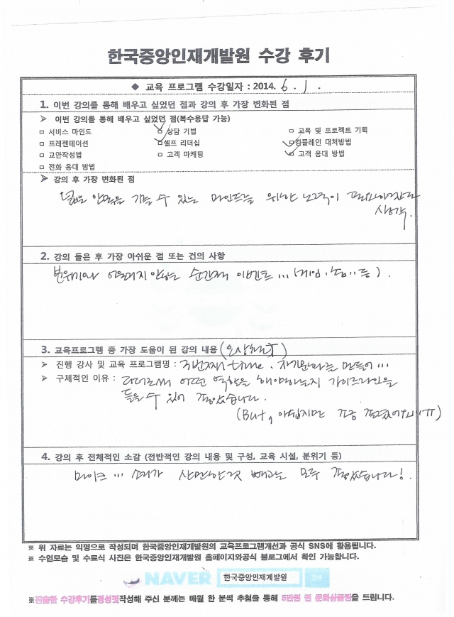 한국중앙인재개발원에서 진행한 기업교육 및 기업연수를 받은